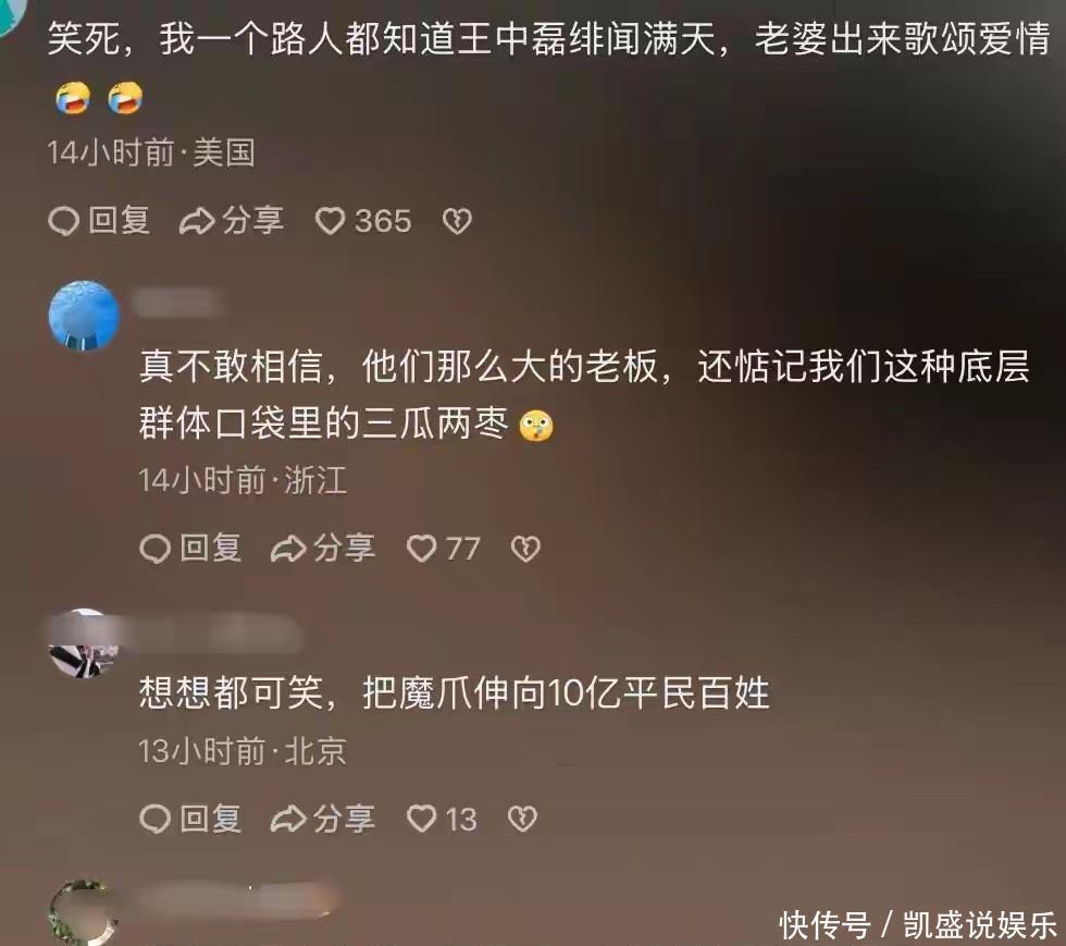 倘若两人的感情真的很好,那为什么过去观众却没有感受到一点?面对网友的这些讽刺,现在王晓蓉和王中磊甚至都不敢进行任何的回应。